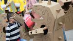 孩子们将废弃纸箱做成卡通形象,进行“纸箱大游行”